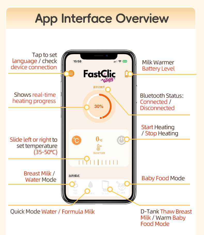FastClic には、次のレベルのミルク加温制御を可能にするアプリが装備されています。