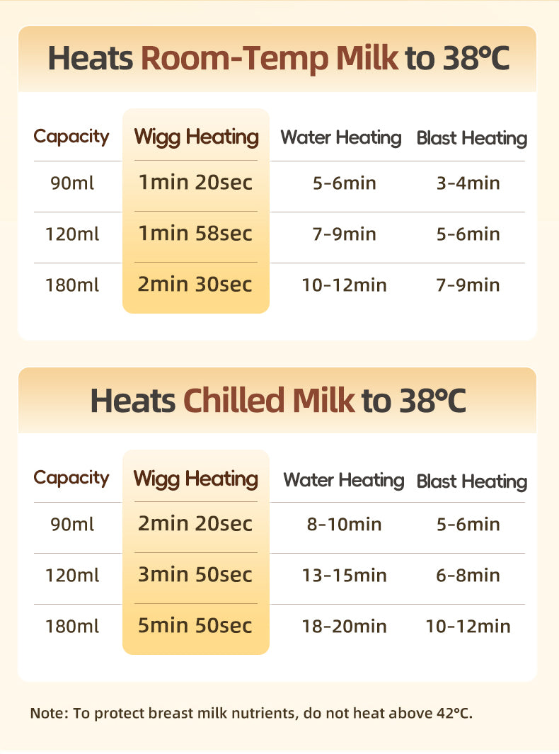 母乳設定が選択されている場合、母乳を傷つけないように、より穏やかな加熱プロファイルが適用されます。